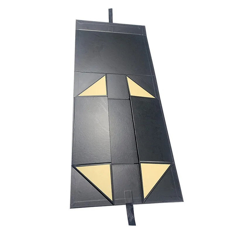 Le corps de la boîte est fait de papier spécial noir mat et l'intérieur est doublé d'une bordure dorée claire. La texture est stable et haut de gamme. Lorsqu'elle est utilisée pour contenir des articles délicats tels que des articles en cuir, des bijoux et des montres, la boîte extérieure sombre peut parfaitement mettre en valeur la texture délicate du cadeau. Le sens de la cérémonie lors de l'ouverture et de la fermeture rend également le cadeau plus digne. Les effets visuels et pratiques globaux sont particulièrement harmonieux et compatibles.